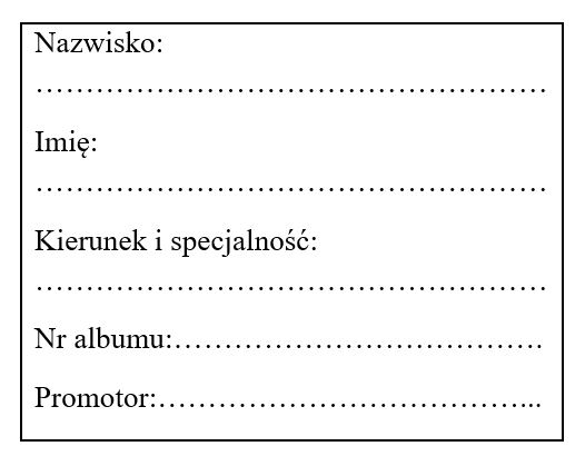*Przed złożeniem pracy w dziekanacie autor zobowiązany jest sprawdzić, czy zapisany plik można otworzyć, czy jest zabezpieczony przed wycinaniem lub kopiowaniem i czy płyta jest wolna od wirusów.