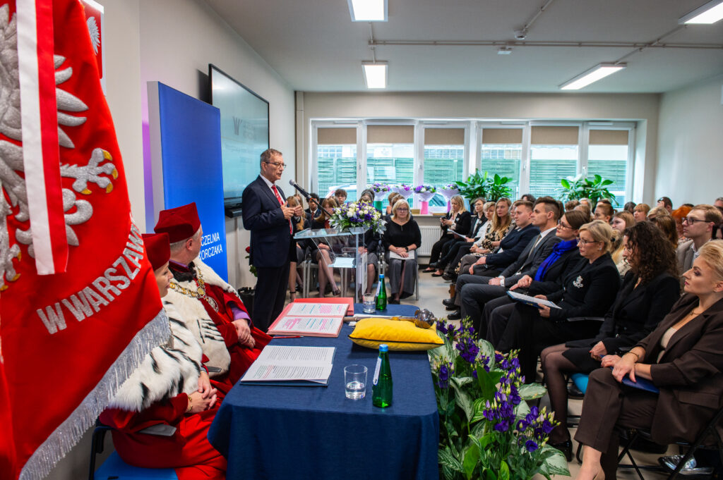 Po wprowadzeniu sztandaru i odśpiewaniu hymnu państwowego Jego Magnificencja Rektor, prof. Mirosław Grewiński, otworzył uroczyste posiedzenie Senatu. W swoim wystąpieniu powitał wszystkich zaproszonych i odczytał listy gratulacyjne oraz życzenia nadesłane m.in. przez Ministra Edukacji, Ministra Rodziny, Pracy i Polityki Społecznej, Prezydenta m.st. Warszawy oraz przedstawicieli wielu uczelni i instytucji.