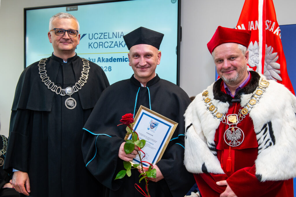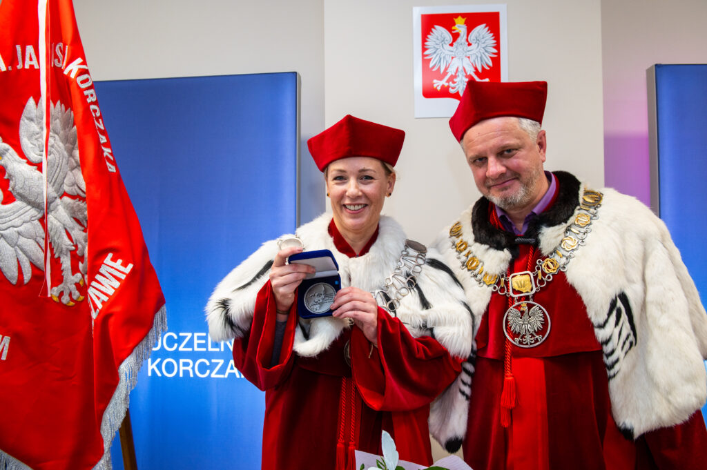 Szczególnym momentem uroczystości było wręczenie odznaczeń i powołań akademickich. Srebrny medal Uczelni Korczaka z okazji dwudziestolecia pracy otrzymała dr Joanna Lizut, Prorektor Uczelni. Rektor, gratulując jubileuszu, podkreślił jej wieloletni wkład w rozwój uczelni, zaangażowanie