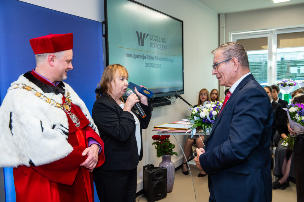 W dalszej części inauguracji Jego Magnificencja wraz z Dyrektor Generalną Towarzystwa Wiedzy Powszechnej Hanną Sierocką uhonorowali prof. Juliana Auleytnera, założyciela Uczelni Korczaka
