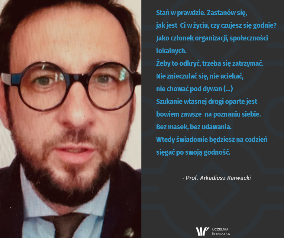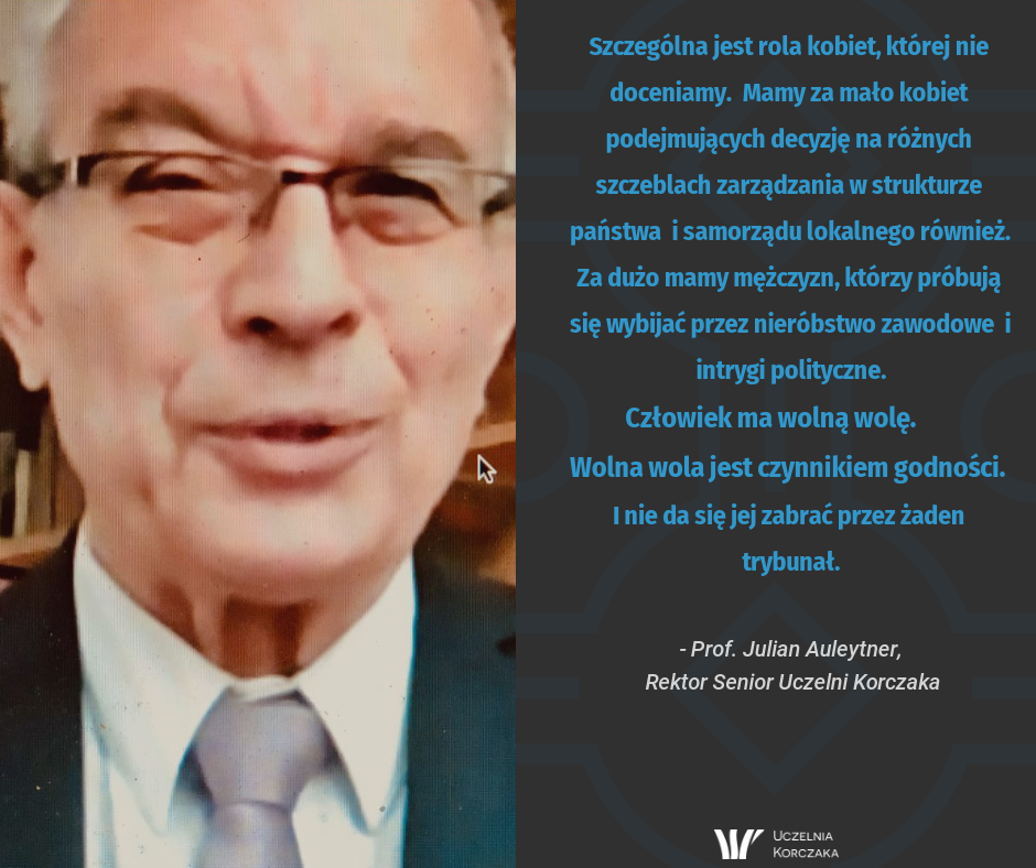 Mimo ograniczeń związanych z organizacją tego ważnego dla społeczności akademickiej wydarzenia, udało nam się zachować wszystkie niezbędne elementy tej uroczystości – mówi prof. Mirosław Grewiński, Rektor Uczelni Korczaka. – Ważne jest to, że mieliśmy się okazję spotkać on line, porozmawiać o wyzwaniach współczesnego świata, o niezwykle ważnej roli pedagogów i pracowników socjalnych. O tym jak ważna jest godność i szacunek do każdego człowieka.
